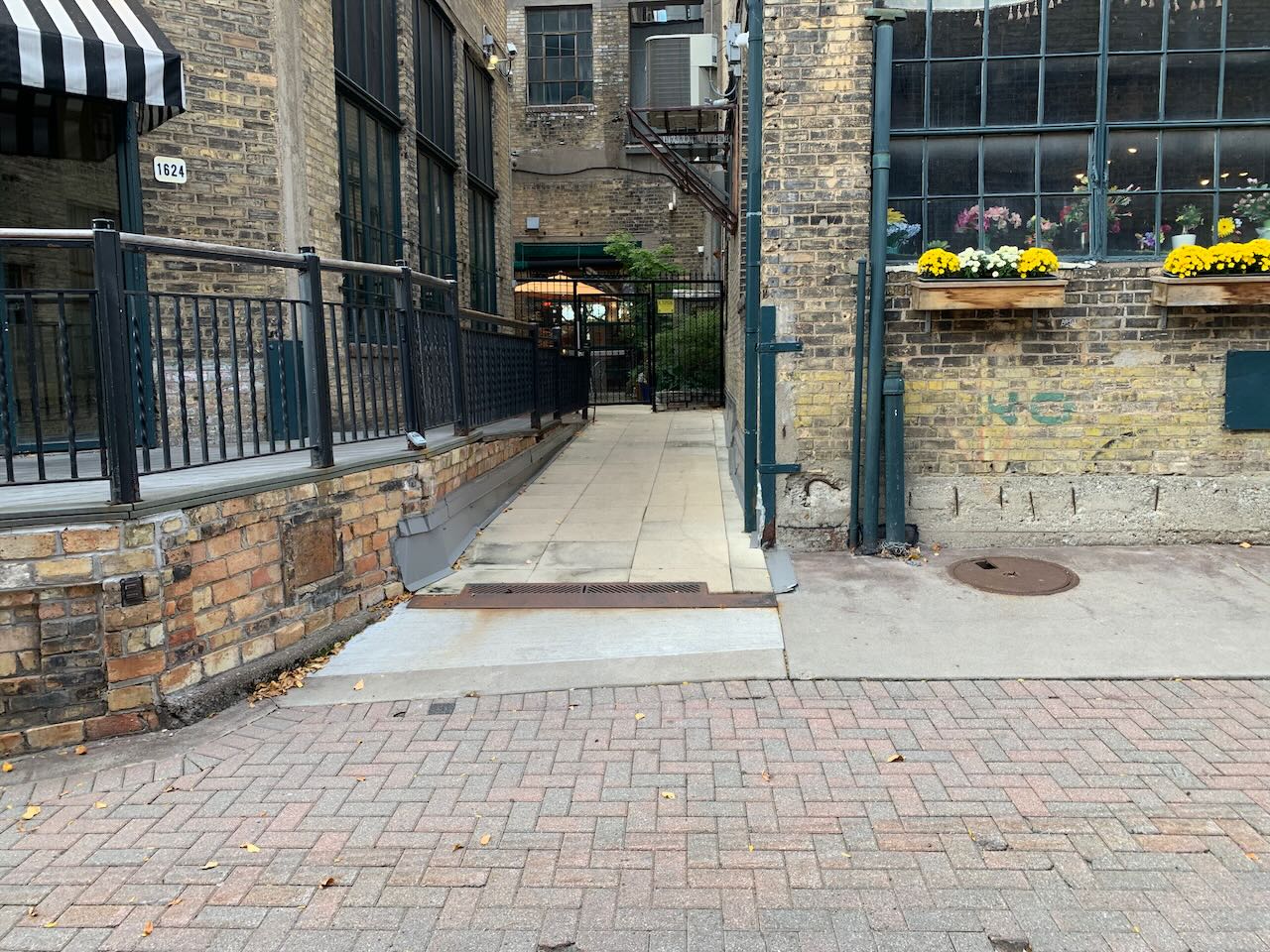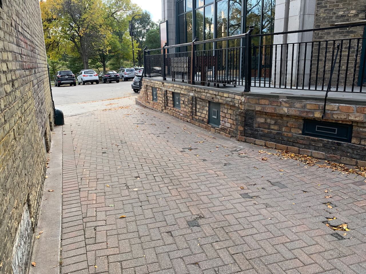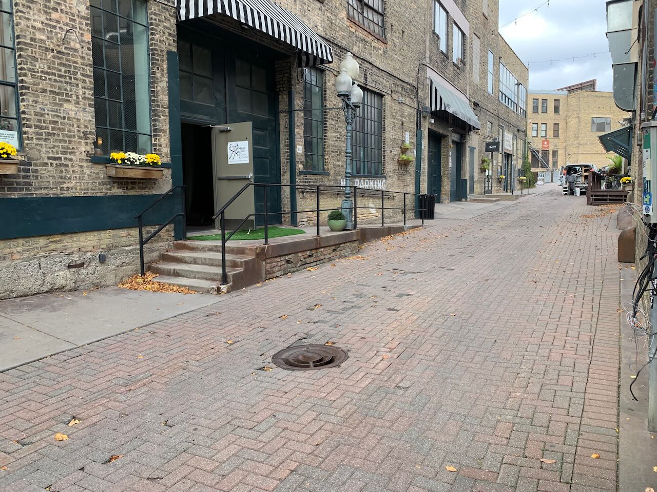 This alley is a public alley and can not be closed or controlled for a long period of time. We could do a shot of our talernt walking down the alley but can not plant camera or lights in the middle of the alley..