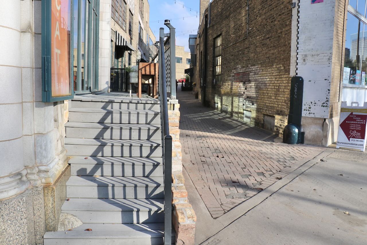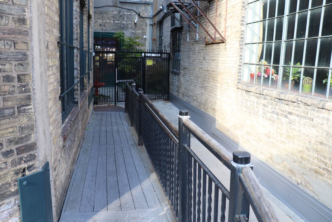 The alley behind/to the side of Lurcat is available to film at but we can not close the alley or control the alley for any length of time. We have to be able and let delivery trucks, work vehicles and any other vehicles come through the alley.